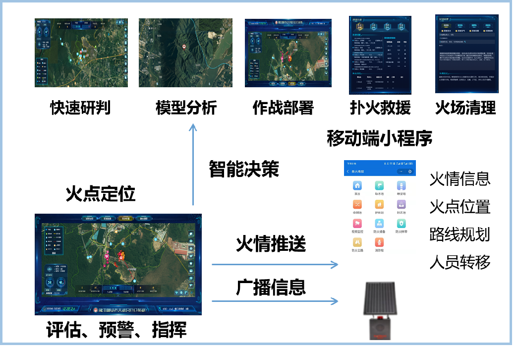 通过建立多位一体的综合预警管控系统构建高频次、全天候、立体化的森林防火智能监测网络,实现多维度监测预警。通过智能化的森林防火预警手段,让林区火点无处遁形,实现早发现早处理,确保森林资源的安全,推动森林管护工作由单一依靠人防向人防和技防结合、以技防为主的改革,进一步减轻林区工作人员的工作强度,提高森林管护成效。