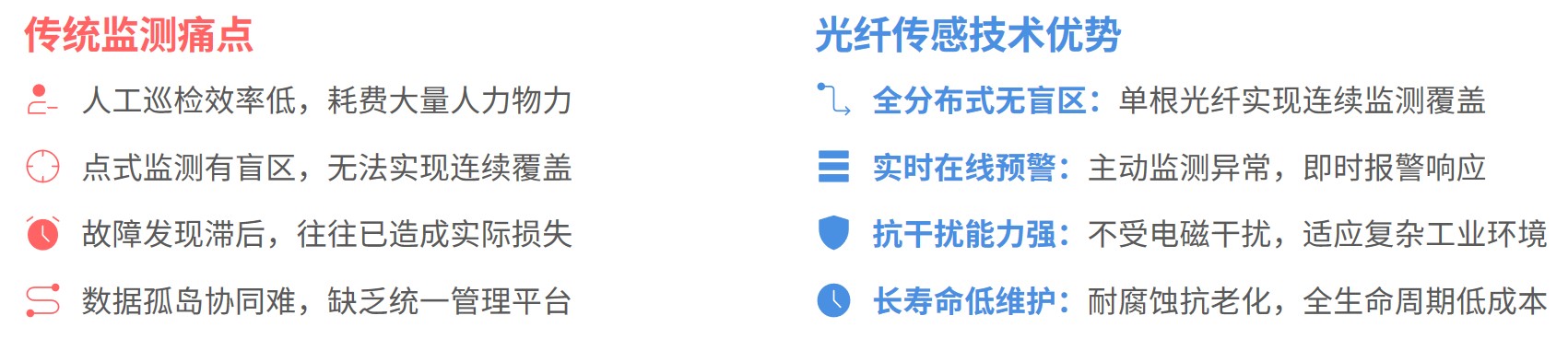 方案依托分布式光纤传感技术的天然优势,结合工程化落地经验,全面超越传统监测方案。